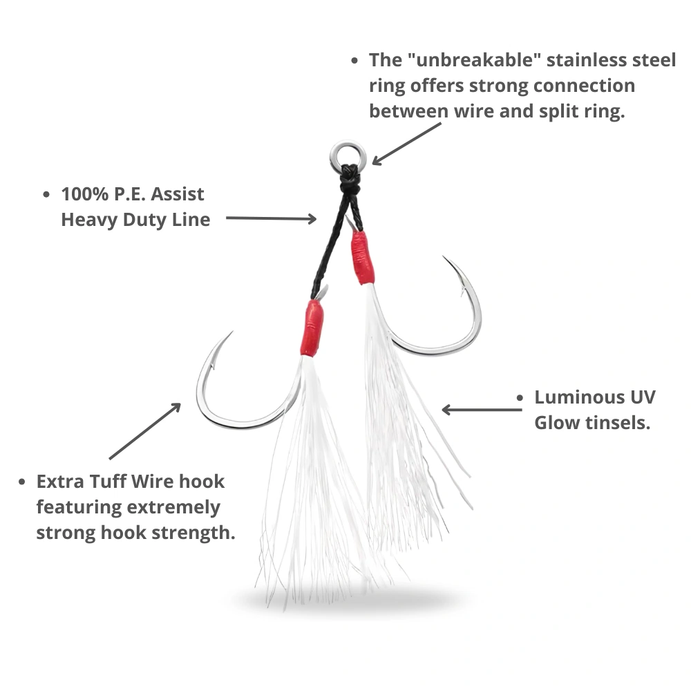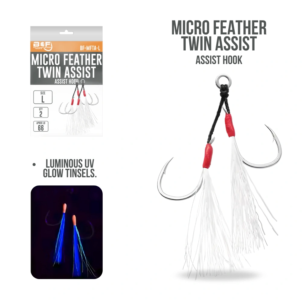 El Bills n Fins Micro Feather Twin Assist es ideal para slow pitch jigging y otras técnicas, proporcionando una combinación perfecta de fuerza y atracción visual. Si buscas mejorar tus resultados en el agua, este set de anzuelos asistidos te dará la ventaja que necesitas para aumentar tu tasa de capturas en cada salida de pesca.