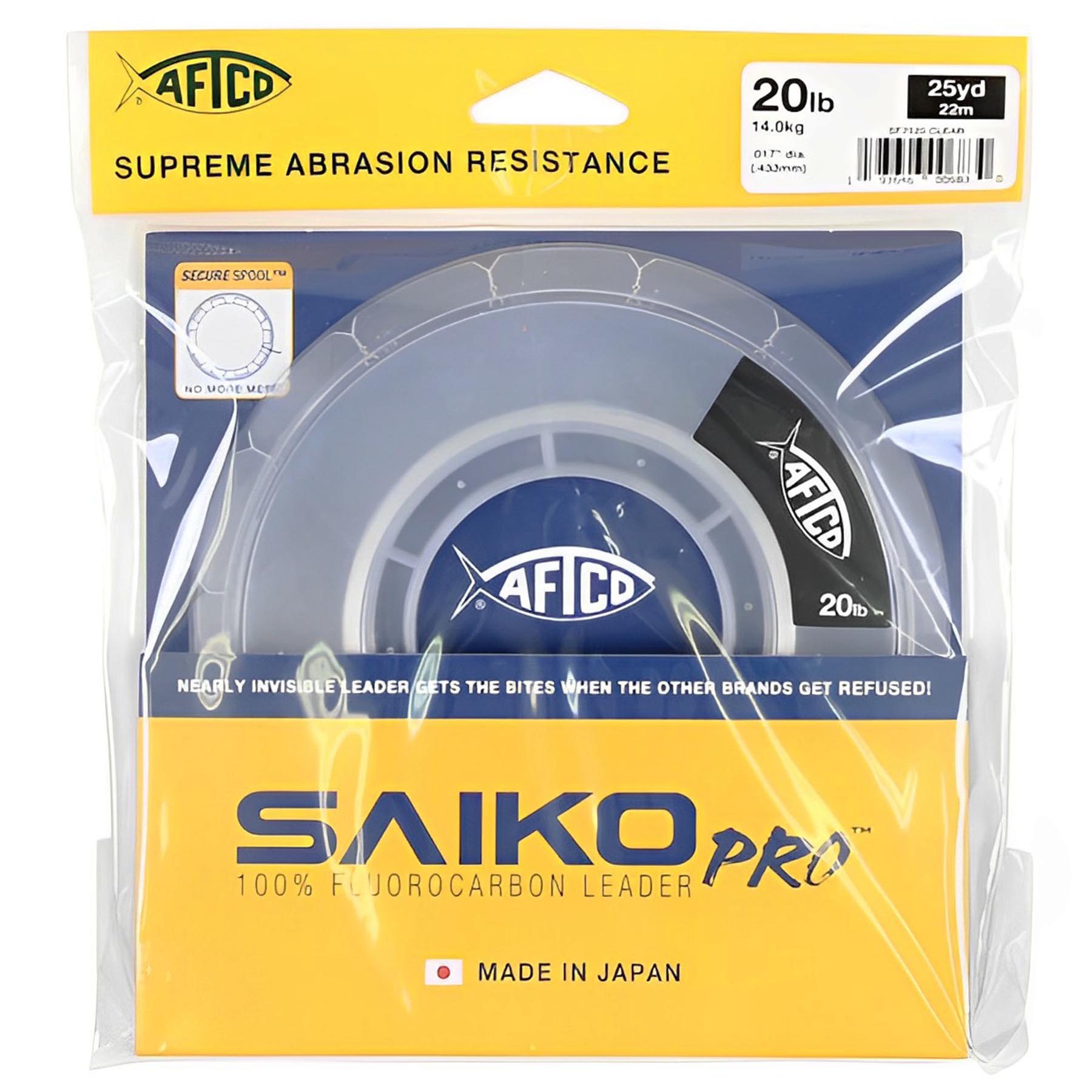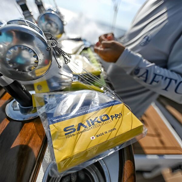 La línea líder Saiko Pro es una línea de pesca de fluorocarbono de fórmula 100% personalizada fabricada en Japón para un rendimiento óptimo del líder. Con un acabado flexible pero duro que proporciona una resistencia suprema a la abrasión, el líder Saiko Pro fluro es más fuerte después de la abrasión que los principales competidores. El nudo y la fuerza de engarzado del líder de AFTCO no tienen igual y la línea generará mordeduras de atunes meticulosos, peces picudos y especies costeras cuando las otras marcas son rechazadas.