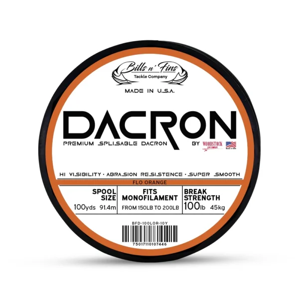 Bills n’ Fins Premium Splisable Dacron 100 Yd Flo Orange