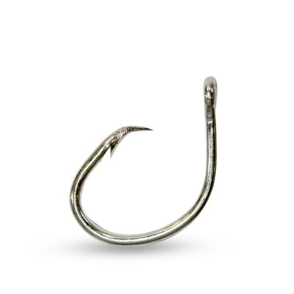 El anzuelo circular Mustad Tuna Circle de alambre reforzado  2X es un verdadero gancho circular que ofrece las mejores relaciones de conexión. Este reforzado anzuelo circular se puede utilizar para una amplia gama de maneras, desde deriva, curricán o kite. El ojo abierto permite sujetarlo fácilmente a un anillo partido, giratorio o anillo soldado con un par de alicates. La punta “MTL-V1” combina un diseño de punta más eficiente con un nuevo proceso de afilado para mejorar la calidad. El resultado es una nueva forma de punta más afilada y elegante con una resistencia a la penetración un 50% menor que las puntas de gancho clásicas estándar. El gancho tiene una punta de gancho kirbed para mejorar el potencial de enganche y un revestimiento Duratin para una alta resistencia a la corrosión.