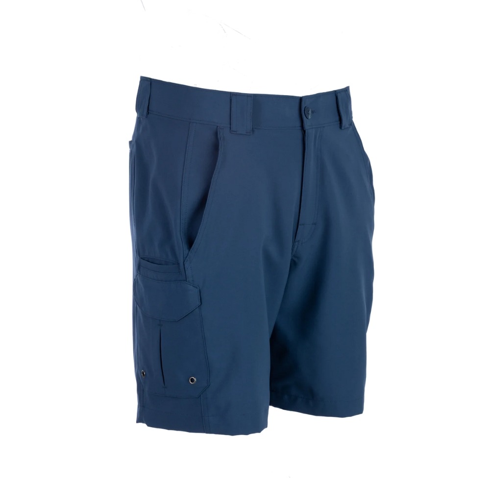 El Bimini Bay Bluefin II Short Bloodguard Bluestone es el short de pesca ideal para quienes buscan una combinación de funcionalidad, estilo y comodidad. Confeccionado con 100 % poliéster Ottoman Stretch, este short ofrece una excelente elasticidad, lo que te permite moverte con total libertad, ya sea en el agua o en actividades al aire libre. Este modelo se caracteriza por su diseño rústico y refinado con 7 prácticos bolsillos, lo que lo convierte en una prenda funcional para los pescadores. Incluye 2 bolsillos delanteros tipo slash, 2 bolsillos cargo laterales con solapa y pliegues invertidos, 2 bolsillos traseros y 1 bolsillo adicional de utilidad, proporcionando un almacenamiento seguro y accesible para tus herramientas y accesorios de pesca. El cinturón rígido con elástico interior y el logotipo Bimini Bay ofrecen un ajuste cómodo y duradero. Los detalles de diseño como el botón DTM con logotipo Bimini Bay y la etiqueta tejida en el bolsillo cargo añaden un toque de estilo adicional. El bordado de pez en el yugo trasero resalta la identidad de la marca. Con un entrepierna de 8 ½ pulgadas, el Bimini Bay Bluefin II Short Bloodguard Bluestone es la opción perfecta para quienes buscan ropa de pesca de alto rendimiento, sin sacrificar el estilo.