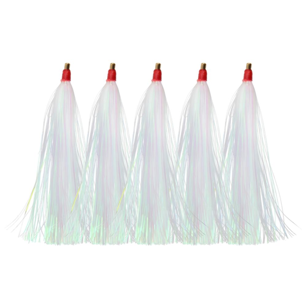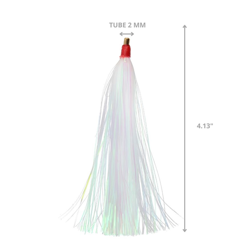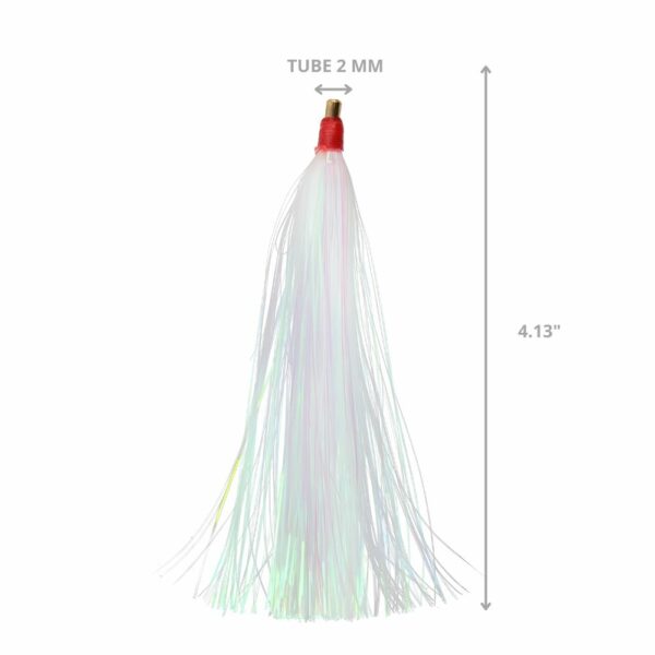 El Bills N Fins Inner Mylar 4″ White 5 Pcs es un teaser de alto rendimiento, diseñado para ofrecer el máximo nivel de atracción en la pesca offshore. Esta versión mejorada incorpora crystal hair y un material especial de pearl flash, que en conjunto generan destellos intensos y naturales bajo el agua, simulando el brillo de un pez en movimiento. Esta combinación de reflejos y acción resulta irresistible, ya sea utilizándolo de manera independiente o debajo de un señuelo con carnada. Es excelente para atraer depredadores pelágicos como marlín, pez vela, atún, dorado y wahoo.Su construcción está reforzada con un tubo de bronce y un aro endurecido, lo que asegura resistencia adicional frente a las condiciones más exigentes del mar. Estos componentes de alta calidad garantizan un teaser fuerte, duradero y confiable, capaz de soportar la presión de largas jornadas de troleo y múltiples embestidas.