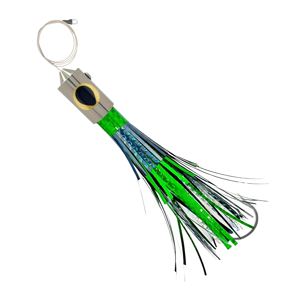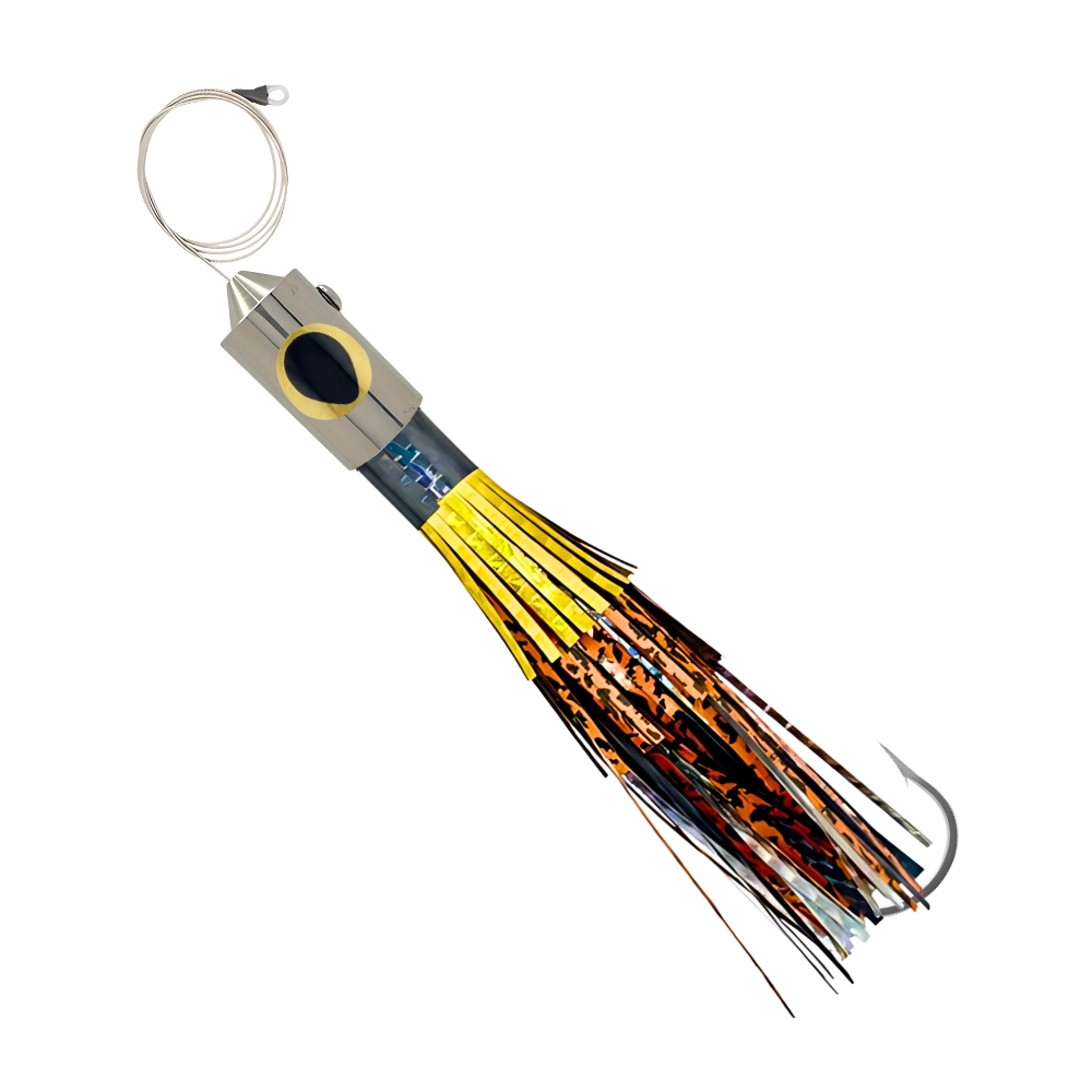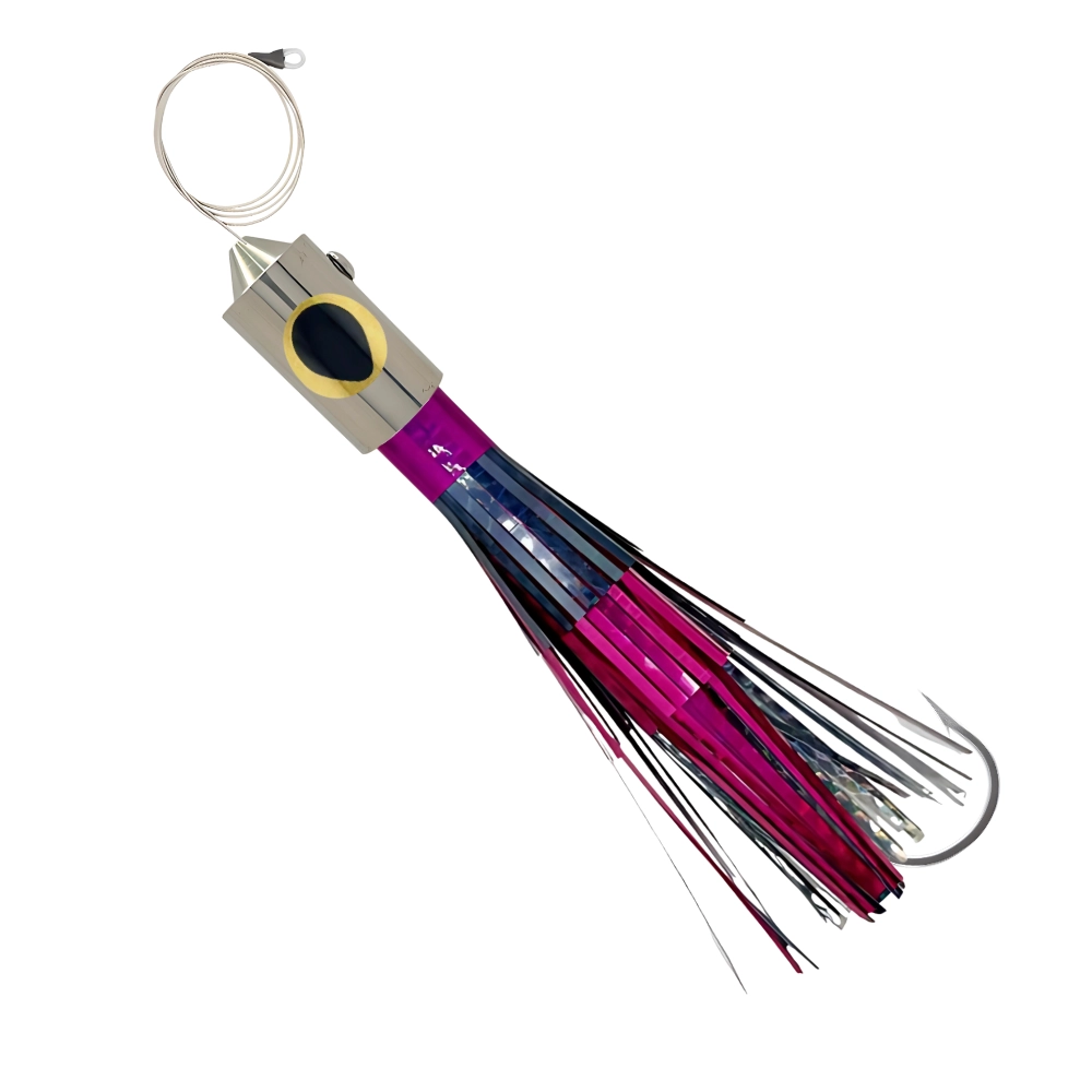 El Bills n Fins Wahoo Rattlebell 8 oz es un señuelo diseñado específicamente para la pesca deportiva de wahoo, una de las especies más rápidas y agresivas del océano. Su efectividad ha sido comprobada temporada tras temporada por capitanes y pescadores profesionales alrededor del mundo, consolidándose como una de las mejores plumas para wahoo disponibles en el mercado.Este modelo viene armado de fábrica con un anzuelo sencillo Bills n Fins Open Gap 8/0 y un cable de acero inoxidable 7x7 de 480 lb, lo que garantiza máxima resistencia ante la fuerza explosiva y dentadura afilada del wahoo.El Wahoo Rattlebell puede ser troleado a velocidades de 5 a 20 nudos sin necesidad de plomo de troleo, simplificando el montaje de la línea y eliminando conexiones innecesarias. Para pescadores que buscan aún más versatilidad, estos señuelos para wahoo también puede trabajar hasta 22 nudos con plomo de troleo, lo que lo convierte en un aliado adaptable a múltiples condiciones de pesca offshore.Su cabeza cónica invertida con recubrimiento de acero inoxidable es clave en su desempeño: crea un ruido característico y una larga estela de burbujas que funcionan como un estímulo visual y auditivo irresistible para los wahoos y sierras. Gracias a esta acción única, el Bills n Fins Wahoo Rattlebell 8 oz se ha convertido en uno de los señuelos de alta velocidad más efectivos para quienes buscan maximizar resultados en cada jornada de pesca de wahoo.