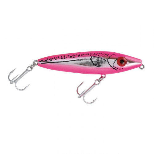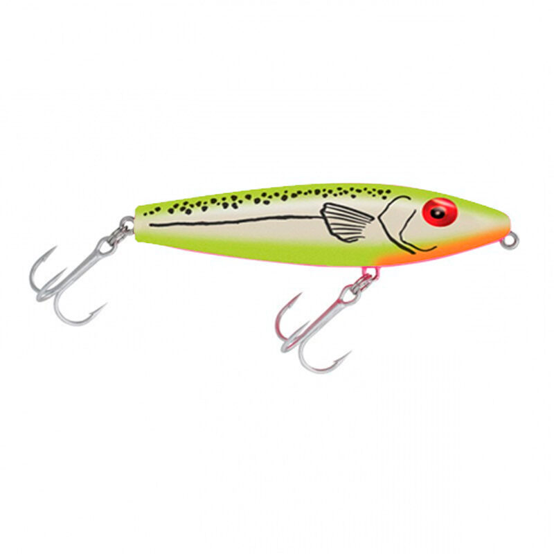 Pintado con pintura reflectante en todo su cuerpo. Cuenta con dos sonajeros perfectos para atraer peces, su alta flotabilidad es perfecto para agua salada y dulce.