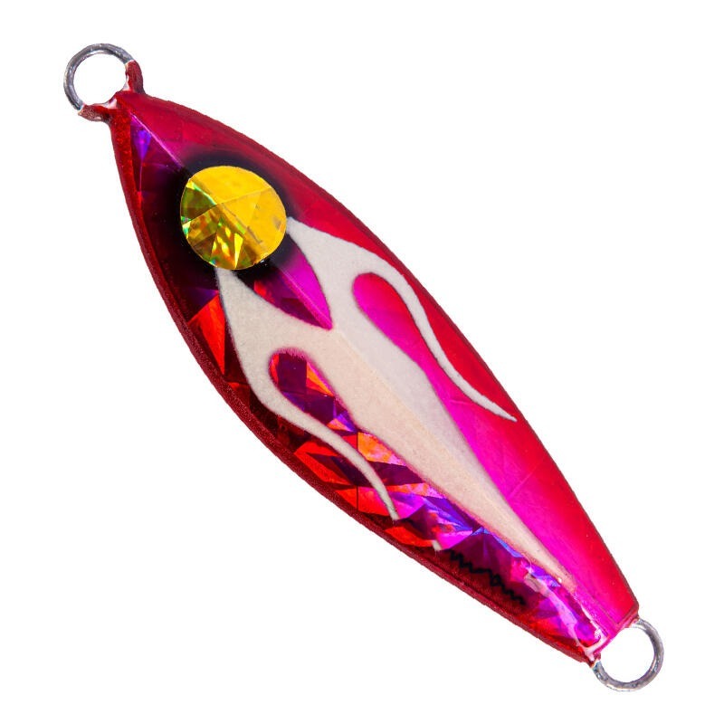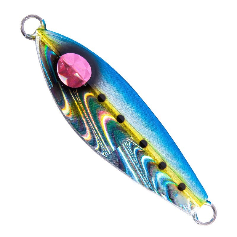 Hayabusa Jack Eye Slow Jigs está diseñado específicamente para utilizar la fuerza repelente de la caña del pescador. Tiene un movimiento de lado a lado tan pronto como lo suelta, y proporciona una acción de caída lenta y oscilante, muy similar a una hoja que cae. Esta acción de caída lenta junto con sus colores brillantes crea atracción y aumentan la posibilidad de atraer muchos peces.