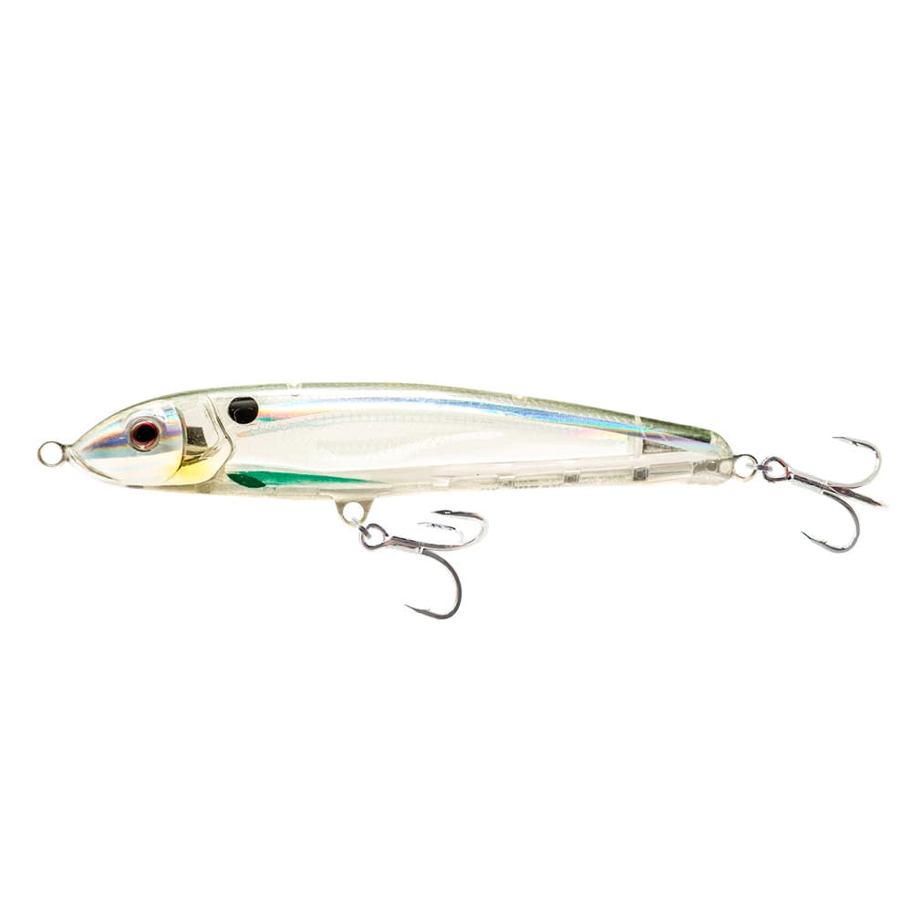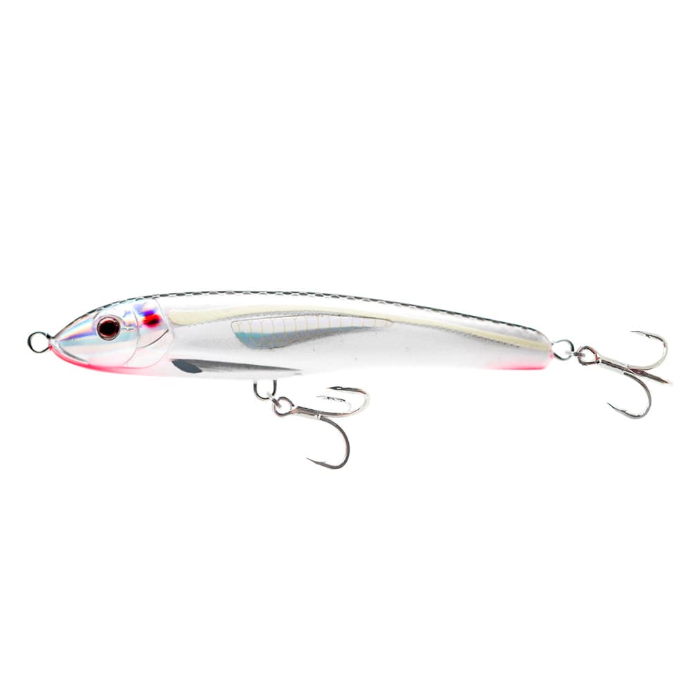 El RIPTIDE “FATSO” 4-1/2 ” es una versión de cuerpo más ancho del renombrado diseño Riptide. Ha sido hecho como el último señuelo de superficie para "pasear al perro". Cuenta con un sonajero interno y está perfectamente equilibrado para lanzamientos de larga distancia. Cuando se mueve y camina de un lado a otro, el señuelo puede dar un giro de 180°, de un lado a otro, e incluso se puede hacer que gire hacia atrás sobre sí mismo. Se puede trabajar agresivamente o de una manera muy sutil y lenta con solo pequeños movimientos de la punta de la caña y un chapoteo sutil. Como sea que lo trabajes, el Riptide 4-1/2” es un arma para atrapar peces.  Diseñados y probados en Australia por el equipo de pesca deportiva Nomad, los señuelos Nomad Design no solo son súper resistentes y duraderos, sino que también presentan colores únicos y, lo que es más importante, formas y acciones únicas y altamente efectivas. Cada señuelo ha sido diseñado para un propósito específico y ha sido balanceado y probado para funcionar perfectamente con los anzuelos elegidos. Cada señuelo de Nomad Design ha sido diseñado por décadas de experiencia en el agua para ser más resistente, durar más y atrapar peces grandes.