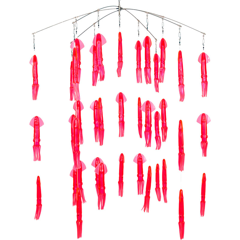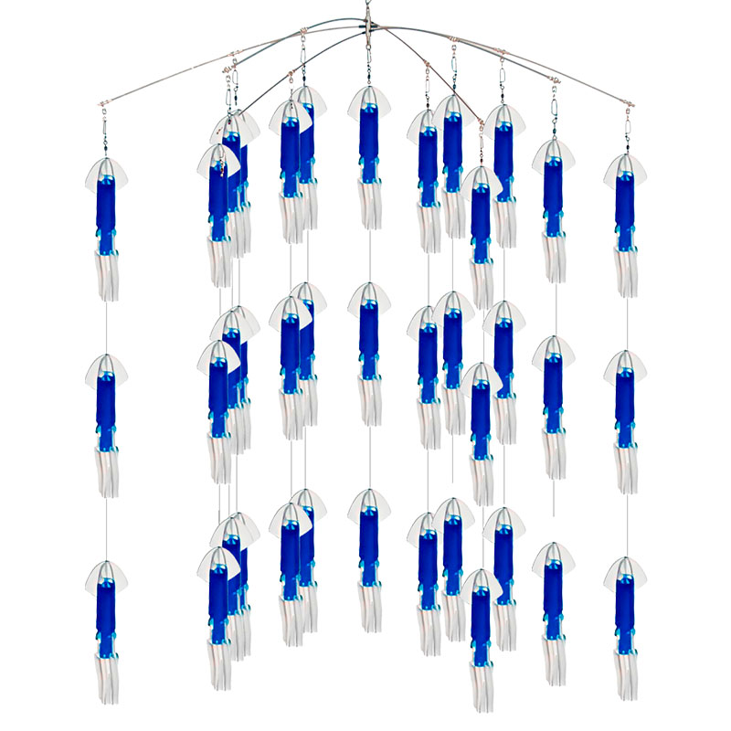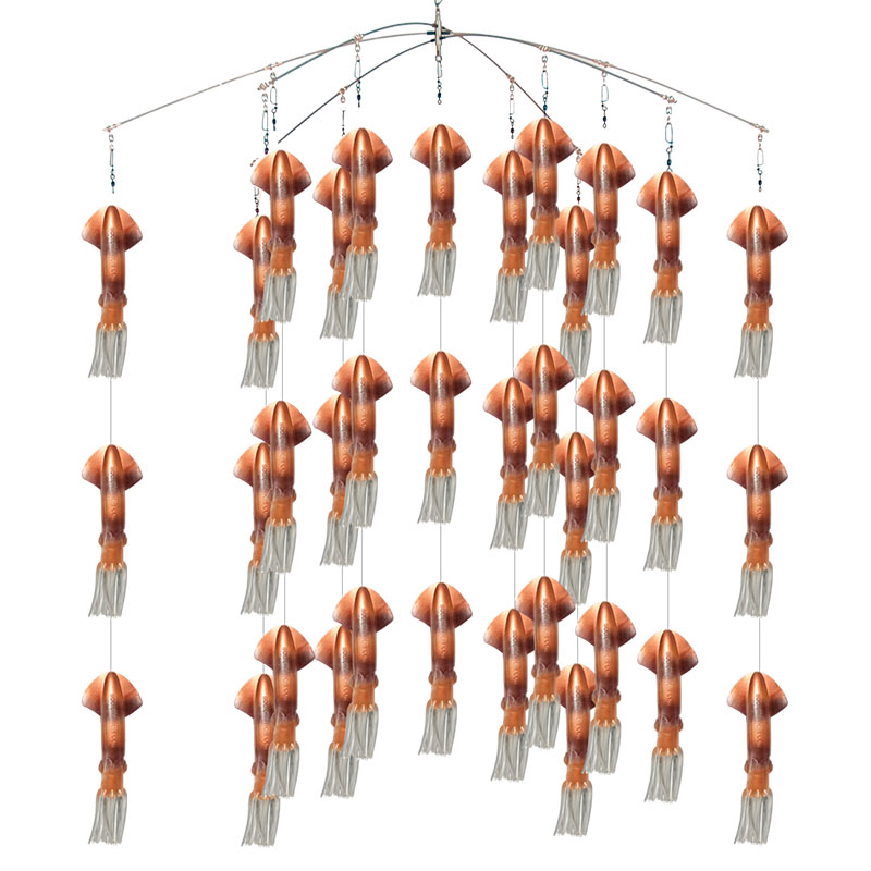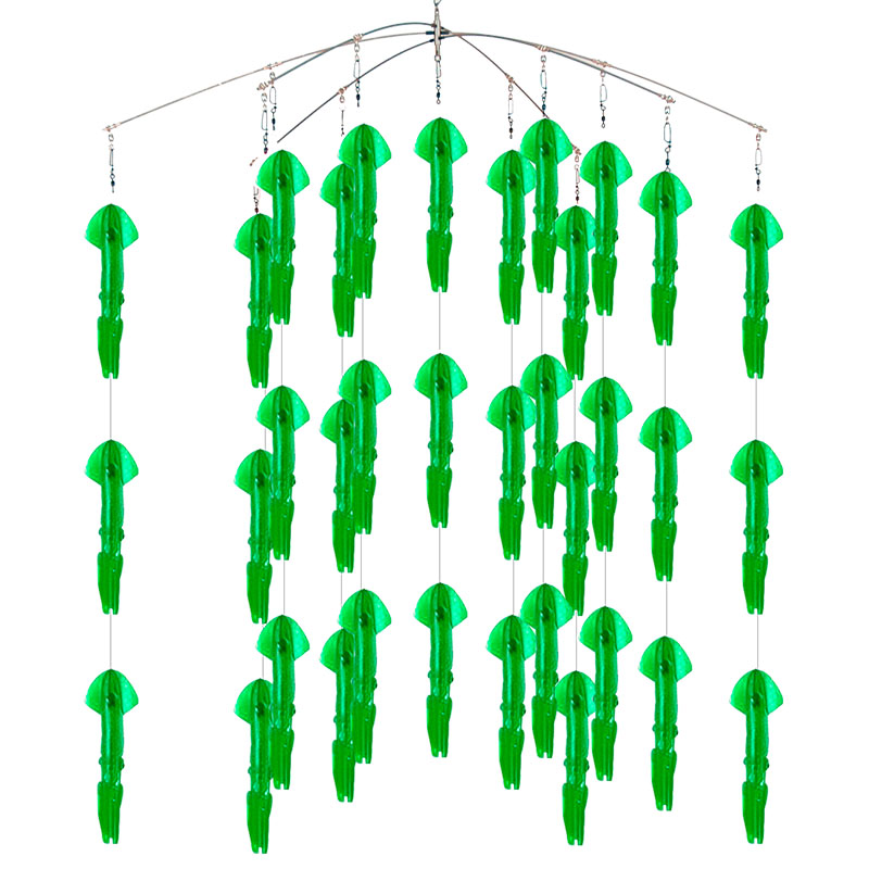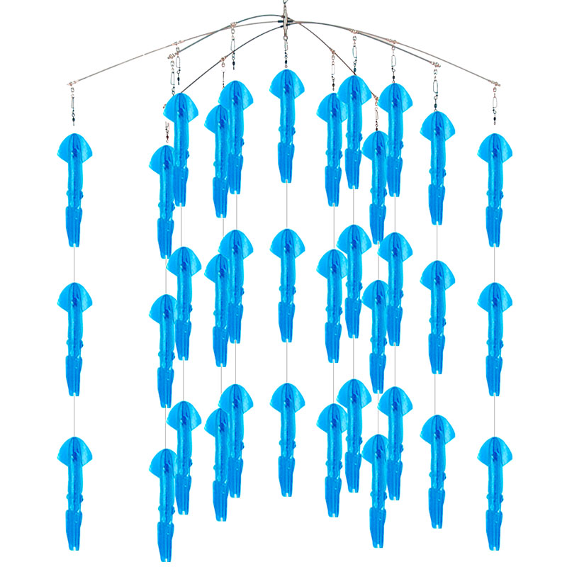 Este dredge es de los más vendidos en el mercado por su alta efectividad y ha sido responsable de numerosos torneos ganados a lo largo del mundo. Este dredge simula una escuela de calamares nadando cerca de la superficie, creando escenario perfecto para Marlins y Pez Vela.