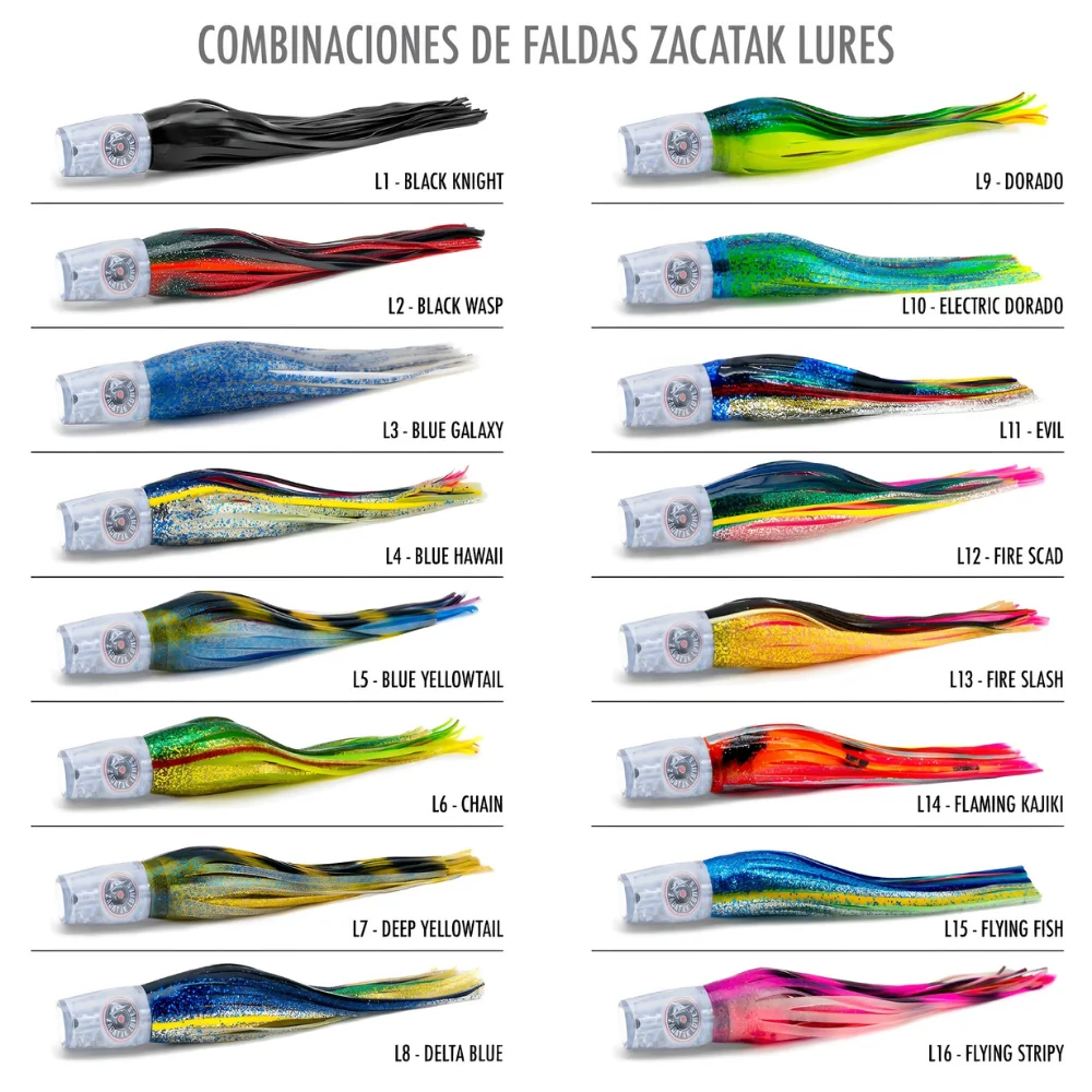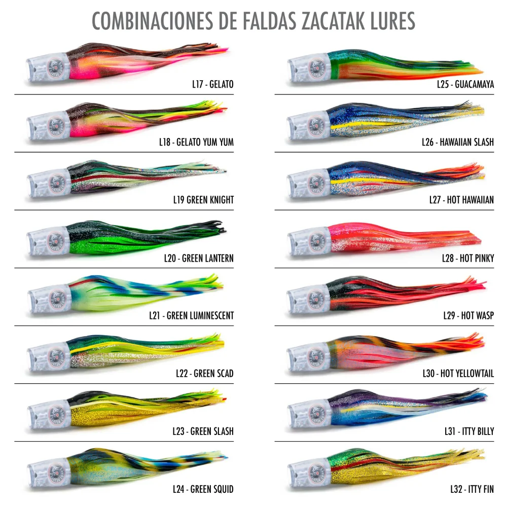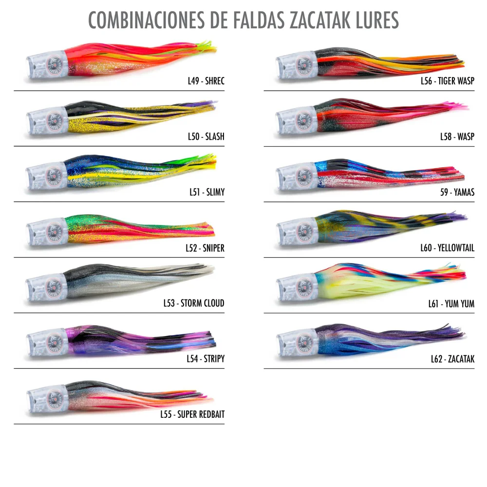 Embárcate en emocionantes travesías de pesca profesional con el Zacatak Lures Smoka Small, un señuelo que redefine la experiencia en aguas saladas. Con un diámetro de cabeza de 28 mm y una falda de 9", este señuelo de tamaño pequeño es la elección predilecta para los pescadores que buscan desafiar a las especies más esquivas. Equipado con un anzuelo recomendado de 7/0 y diseñado para pescar con una línea de 30 lb y un líder de monofilamento de 200 lb, el señuelo Zacatak te permite ir tras peces como barrilete, atún, atún aleta amarilla, pez sierra, wahoo, pez vela y marlin blanco. El Smoka se destaca por su perfil cónico largo y su nado firme, ofreciendo estabilidad y versatilidad inigualables. Su capacidad para mantener un nado constante en diversas condiciones meteorológicas y a diferentes velocidades en la pesca de troleo, lo distingue entre los señuelos convencionales. Descubre el poder del curricán Zacatak y eleva tu experiencia de pesca a nuevas alturas. Domina el océano con este señuelo de agua salada excepcional y sumérgete en la emoción de capturar momentos inolvidables. ¡Prepárate para la pesca al curricán con el Smoka Small y haz cada jornada inolvidable!
